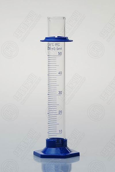 MEASURING CYLINDER with spout , plastic hexagonal base 50ML
