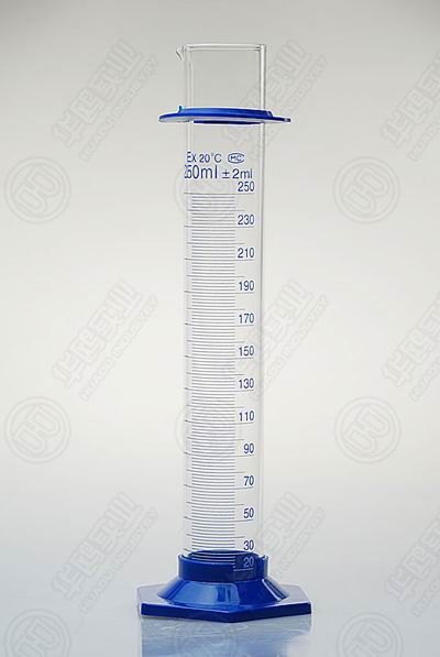 MEASURING CYLINDER with spout , plastic hexagonal base 250ML