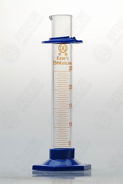 MEASURING CYLINDER with spout , plastic hexagonal base 25ML