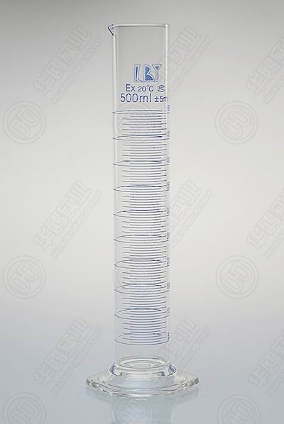 1601T MEASURING CYLINDER with spout , hexagonal base 500ML Blue scale